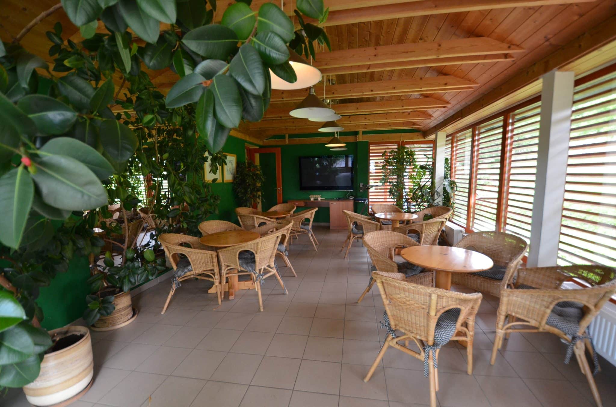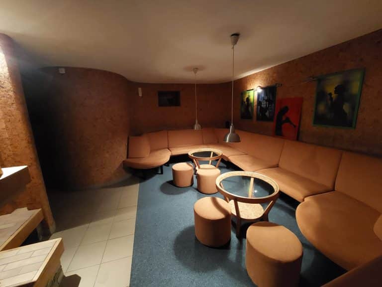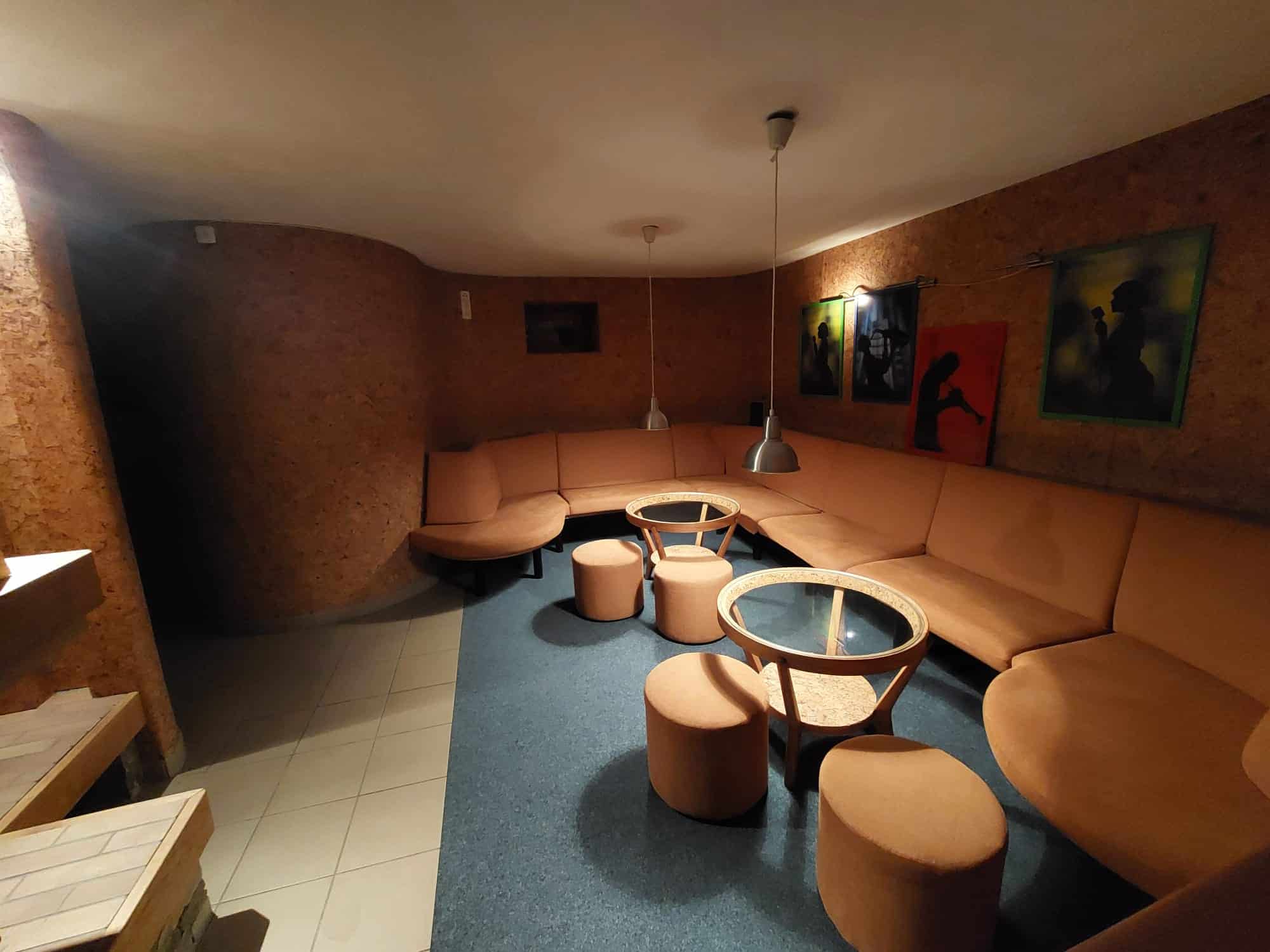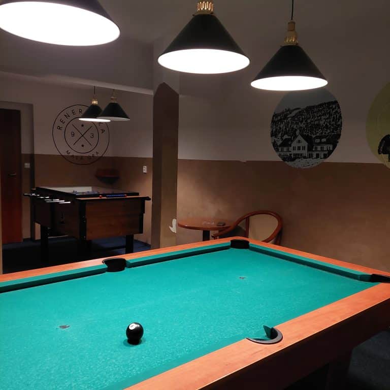 Na něj volně navazuje odpočinková zóna s kulečníkem a stolním fotbálkem.